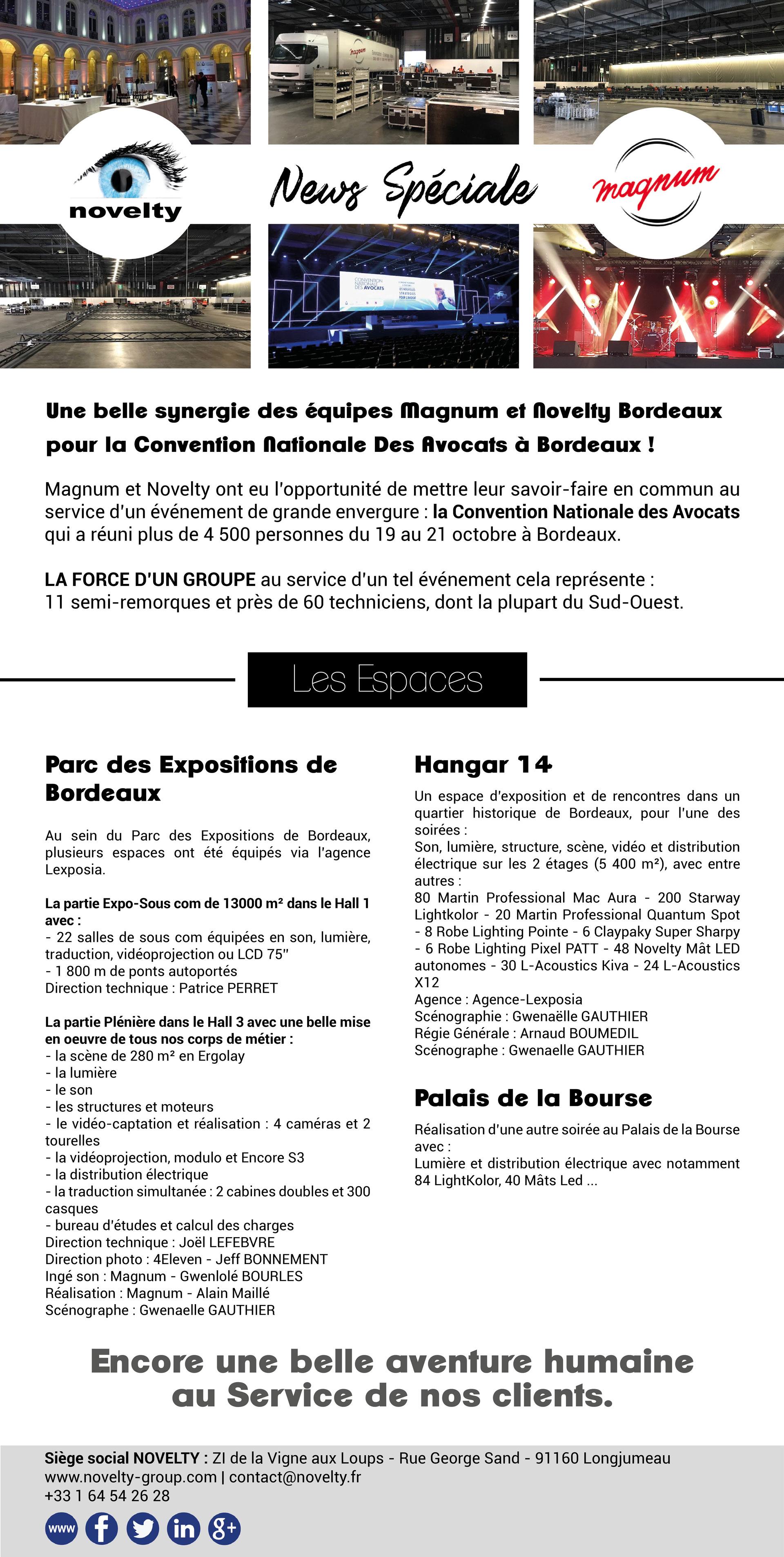 Magnum et Novelty Bordeaux ont eu l’opportunité de mettre leur savoir-faire en commun au service d’un événement de grande envergure : la Convention Nationale des Avocats qui a réuni plus de 4 500 personnes du 19 au 21 octobre à Bordeaux.