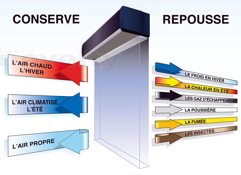 L’utilisation d’un rideau d’air toute l’année, en version chauffante ou recyclage uniquement, permet une meilleure isolation intérieure et contribue à limiter les dépenses d’énergie de chauffage ou de climatisation.