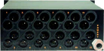 Bloc de puissance 36 x 3kW. Entrée : P17 125tri. Sorties : 36 x PC16A (doublées)