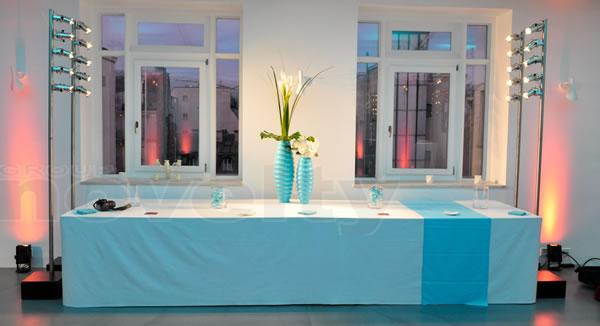 Set de 4 mâts LED chromés, 5 PAR16 par mât, sur batterie, 8h d'autonomie