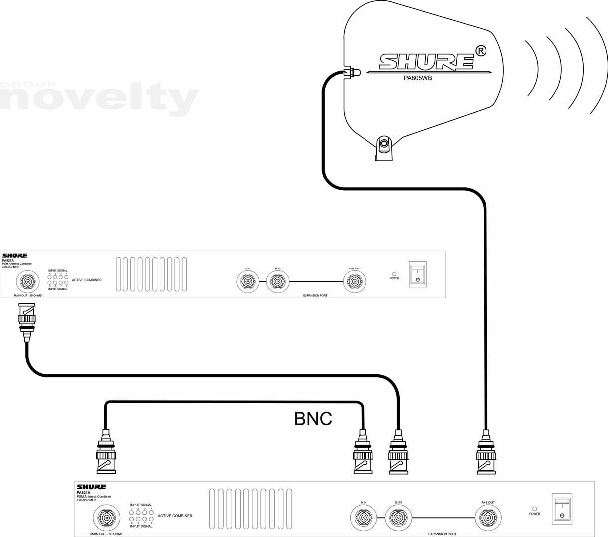 Le PA821A est compatible avec les systèmes suivants in-Ear sans fil de Shure: PSM 400, PSM 600, PSM 700, PSM 900 et 1000 PSM. Le PA821A peut également être utilisé avec d'autres émetteurs in-ear et / ou combineurs d'antennes avec combineur intégré passif avec deux entrées et une sortie.