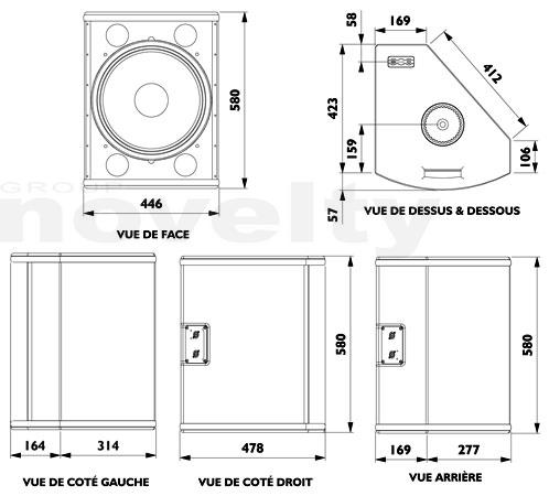 - HF 26 Vrms / 85 Wrms / 350 Wcrête / 350 W (Recommandée) / 8 ohms (Nominale)