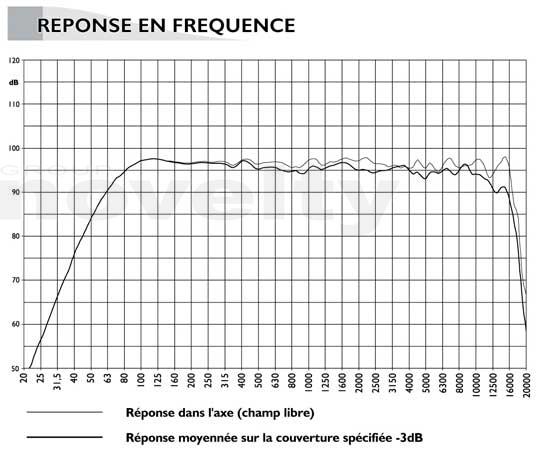 - 122 dB (cont) 128 dB (crête) FRONT (établit un contour grave de +3dB en champ libre)