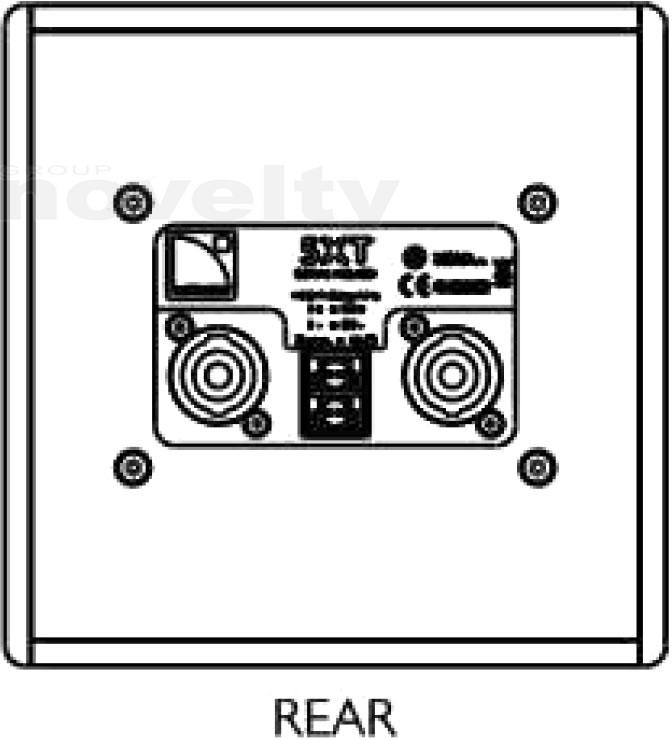 L'enceinte dispose sur sa face inférieure d'une embase de 3/8" pour montage sur pied de micro, ainsi qu'un insert M6 de chaque côté de la menuiserie permettant d'accrocher l'enceinte à l'aide d'un étrier ajustable. La connexion de l'enceinte s'effectue à l'aide de deux embases SpeakON® 4 points montées en parallèle ou de deux borniers à vis.