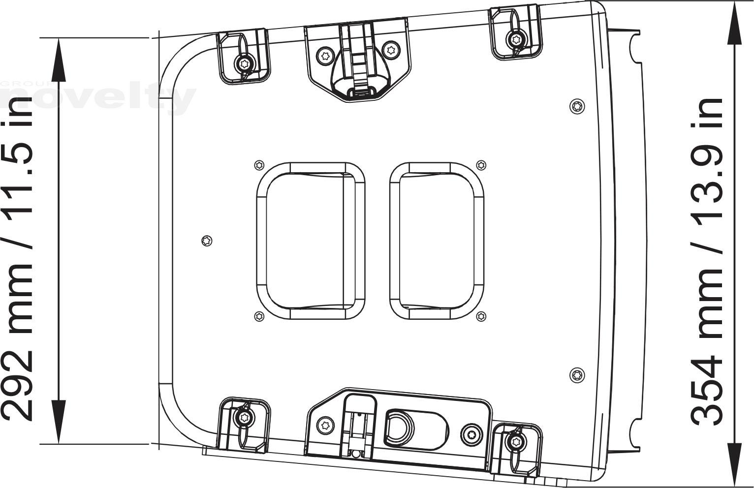 - Accrochage et manipulation : Système d’accrochage à 2 points affleurant 1 poignée, 8 butées d’angle et 2 patins de sol
