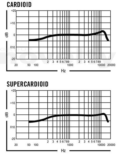 - Sensitivity (1 kHz): Cardioid -33.5 dBV/Pa; Omnidirectional: -28.0 dBV/Pa; Supercardioid -32.5 dBV/Pa / Cardioid 21.1 mV/Pa; Omnidirectional: 39.8 mV/Pa; Supercardioid 23.7 mV/Pa