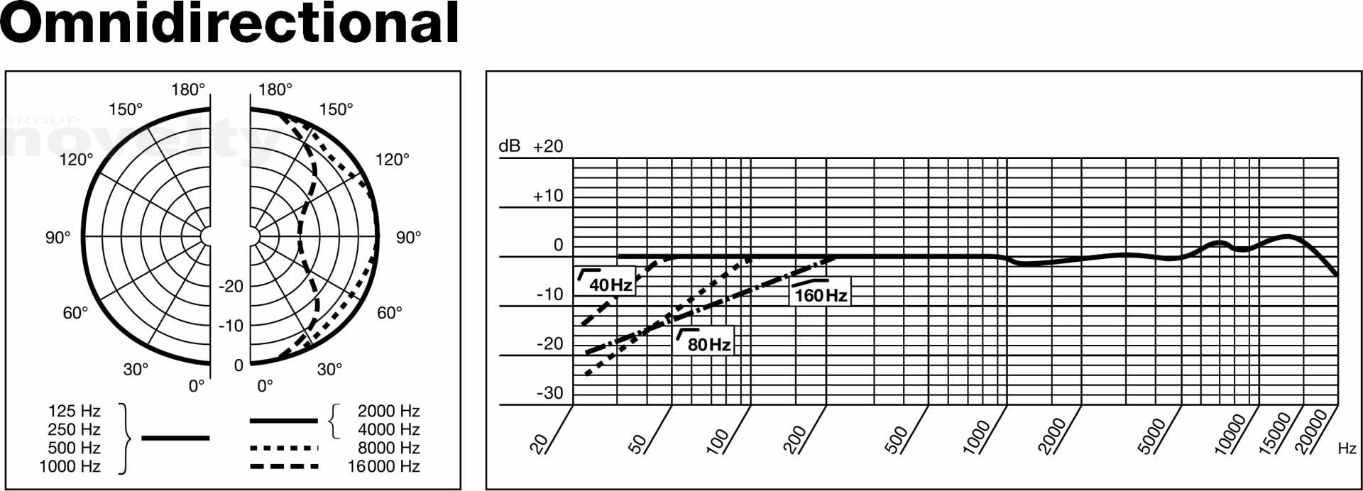 - Polar patterns : Omnidirectional, wide cardioid, cardioid, hypercardioid, figure eight?Sensitivity : 23 mV/Pa (-33 dBV) ± 0.5 dB?Frequency range : 20 to 20,000 Hz (see frequency response traces)?Electrical impedance : ≤ 200 ohms