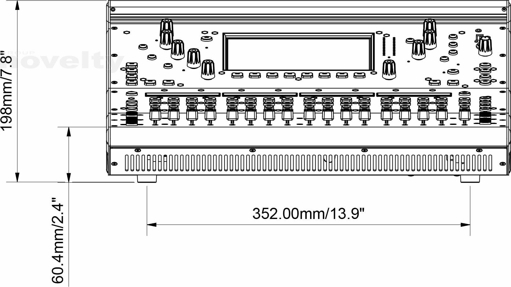 - Contrôles physiques dédiés pour chaque canal d'entrée : Gain, fréquence HPF, Seuil Gate, Seuil Compresseur, Panoramique, Gain/Fréquence/Largeur égalisation.