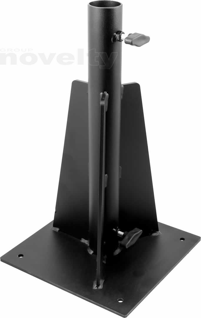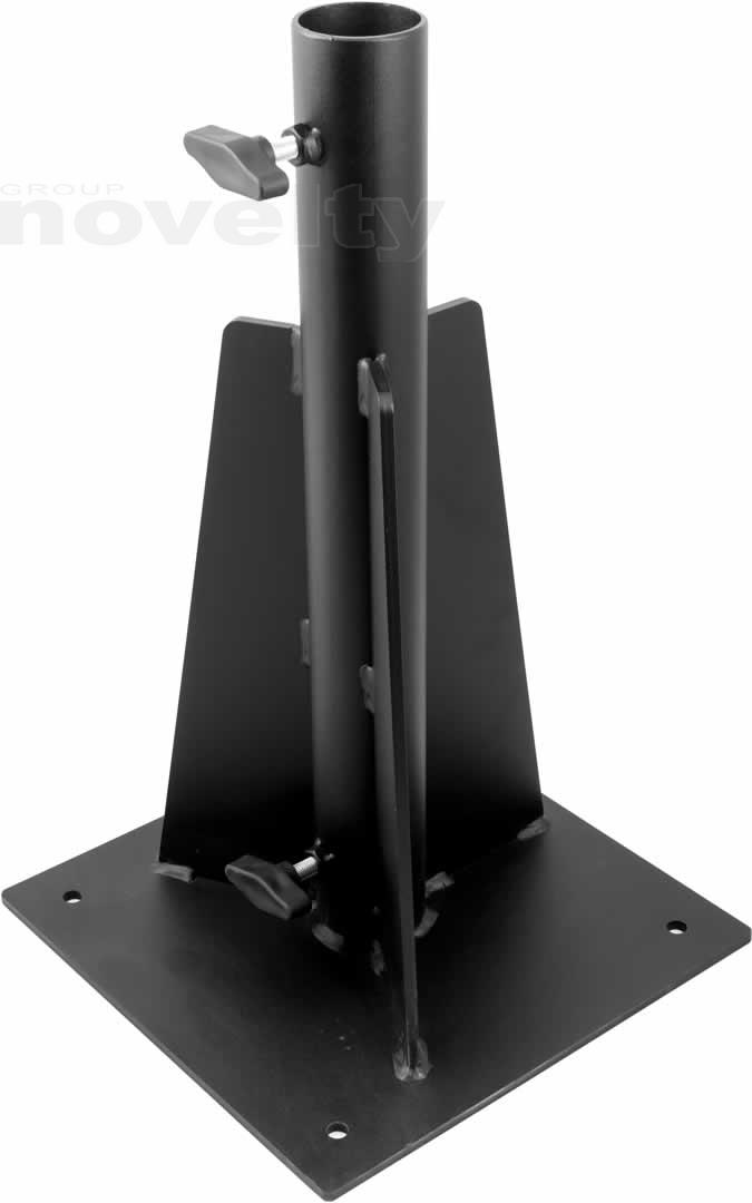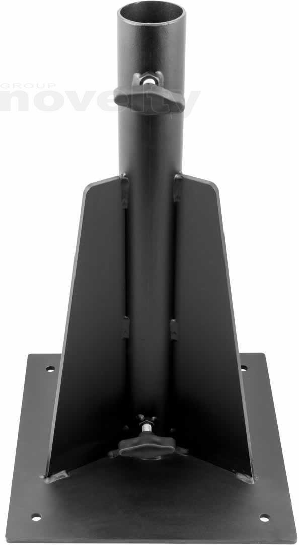Embase "chandelle" pour tube Ø50mm, 4 trous entre-axe structure série 300 carré pour assemblage sur embase lourde, couleur noire