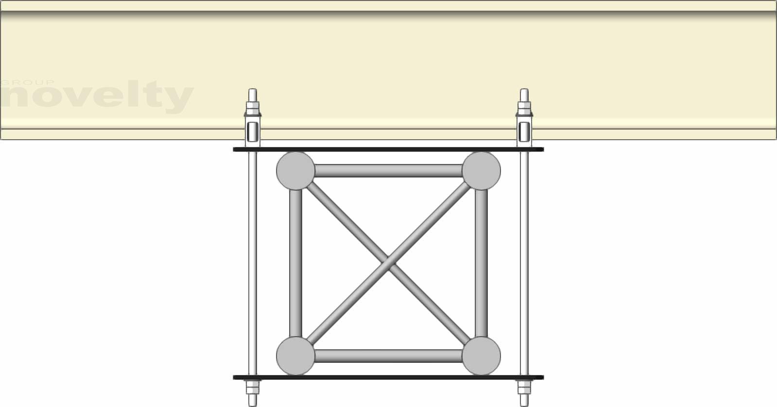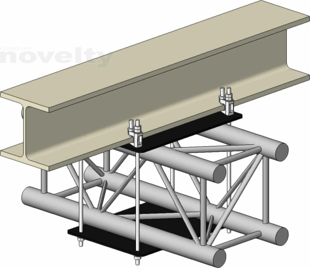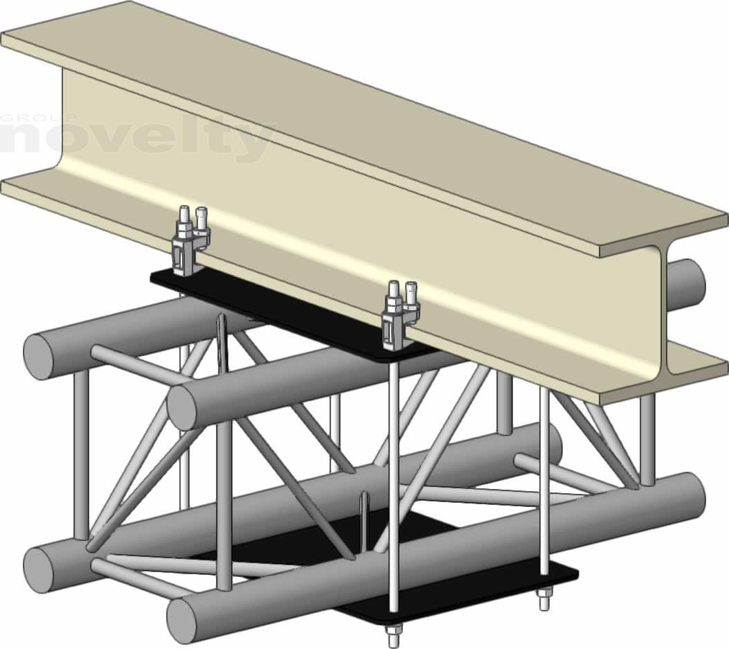 Ensemble d'accroche double pour série 300 carré sur poutre IPN type HEB180, CMU 300kg