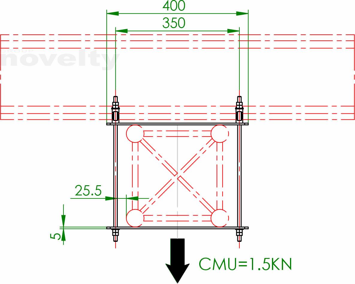 Ensemble d'accroche double pour série 300 carré sur poutre IPN type HEB240, CMU 300kg