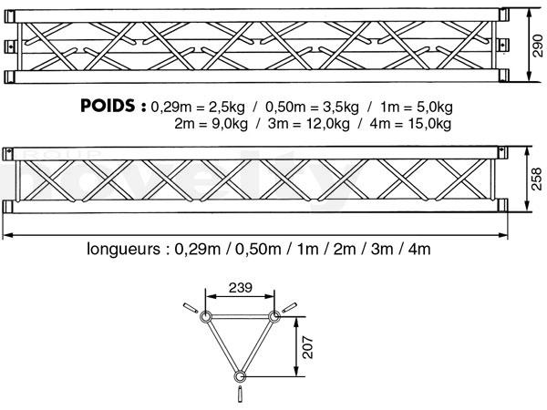 Poutre de 0,29m, section triangulaire, alu (équipée de 3 manchons + 6 goupilles/sécus)