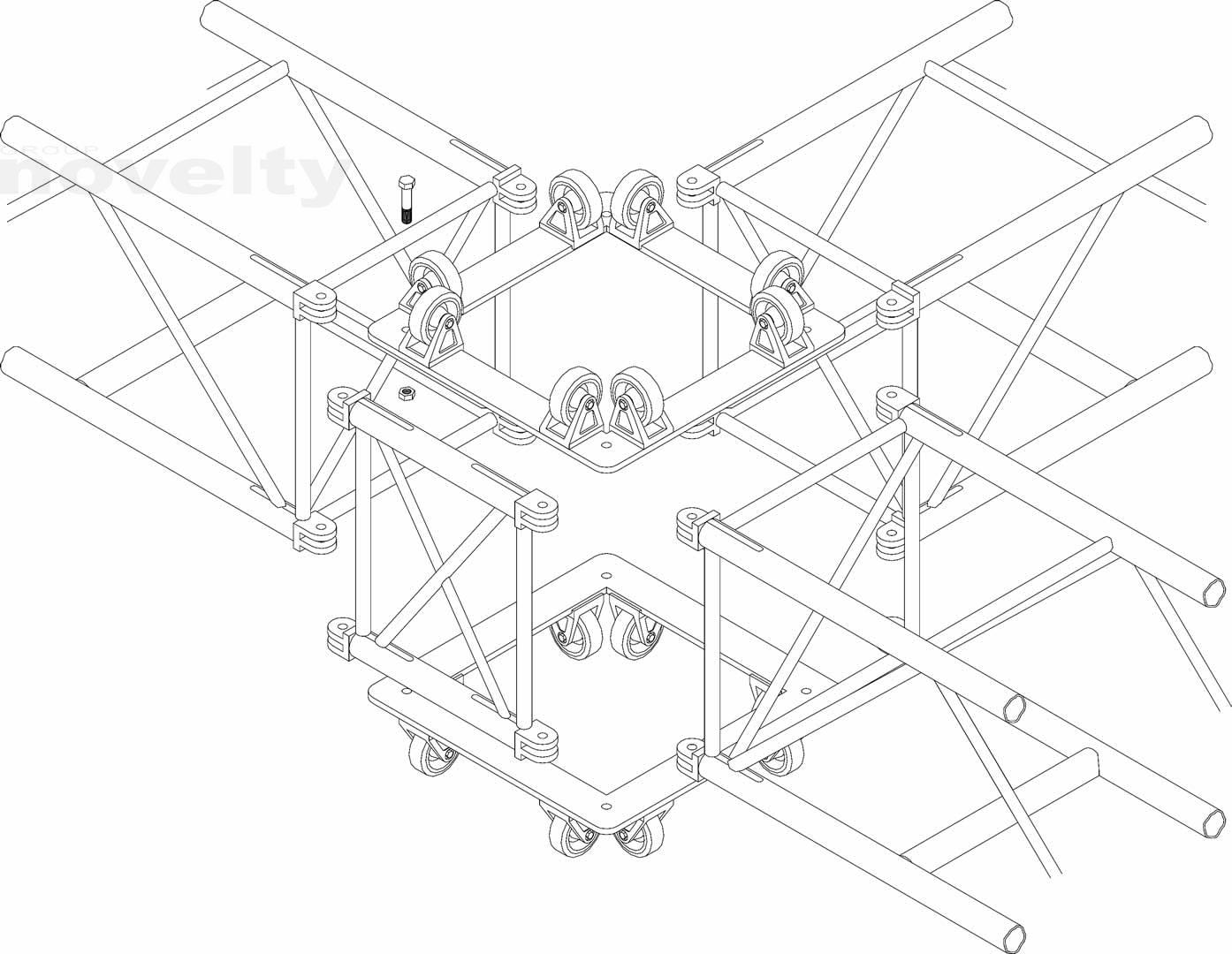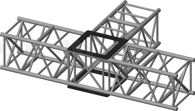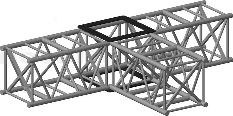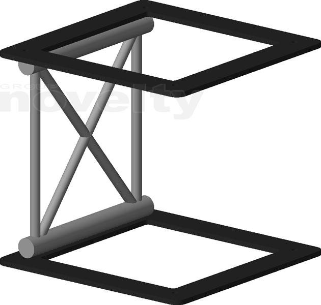 Poutre carrée 52 x 52 cm avec tubes principaux de 50,8 mm de diamètre (épaisseur 4 mm) et diagonales de 25,4 mm de diamètre (épaisseur 3,2 mm) en aluminium 6082-T6. La conception des poutres permet le montage entre elles par assemblage de fourches horizontales unisexes qui évitent l’utilisation de pièces d’angle complexes et onéreuses