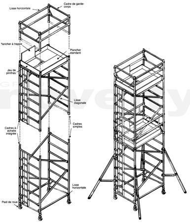 Tour échelle double largeur, la hauteur de 2m, 1,40 X 1,75m
