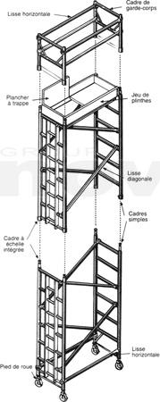Tour échelle simple largeur, la hauteur de 2m, 0,70 X 1,75m