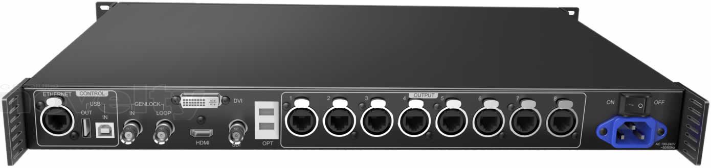 Processeur vidéo pour Mur LED, 3840 x 1080 pixels, OUT : 8 x RJ45 Gigabit ethernet + 2 x Fibre