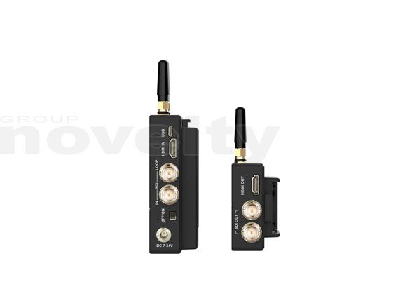 FLOW500 wireless system is based on SWIT latest KUWI wireless technology, 5.1-5.9GHz license free bands, DFS comply, supports 3G/HD-SDI and HDMI (Max 1080p60) to transmit 500 feet (150 meters) Line-of-Sight distance. The system is pure hardware con- nection, plug and play, which is widely used in director monitoring, drone, ropeway camera, steadicam etc.Input & Output