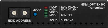 Lightware HDMI-OPT-series devices extend HDMI 1.3, DVI 1.0, HDCP and bidirectional RS-232 signals over one multimode fiber, and transmit the video signal with embedded audio to up to 2500 meters distance. ??All transmitters feature Lightware’s well known Advanced EDID Management with a memory of 100 EDIDs, 50 of which are user programmable. Using the Factory, Custom or Transparent EDID emulation the user can fix and lock EDID data on the transmitter’s input connector.