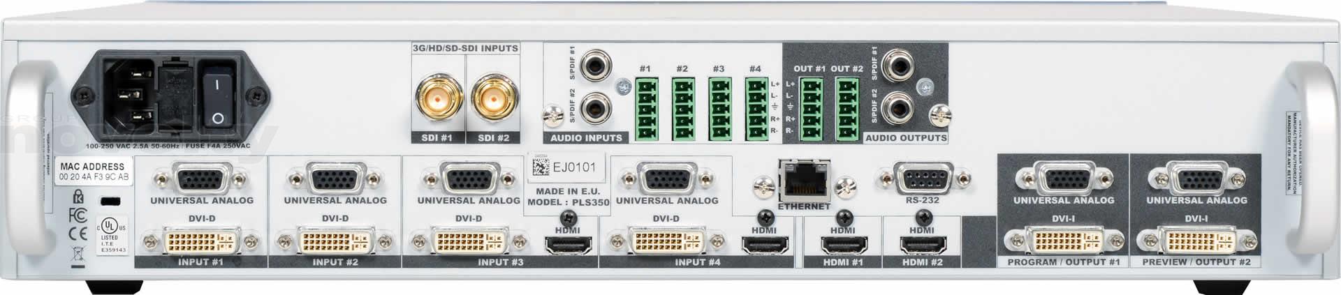 • 14 connecteurs d’entrée disponibles (4 x DVI-D, 4 x HDMI, 4 x universels analogiques & 2 x 3G/ HD/SD-SDI)?Formats informatiques jusqu’à 2K