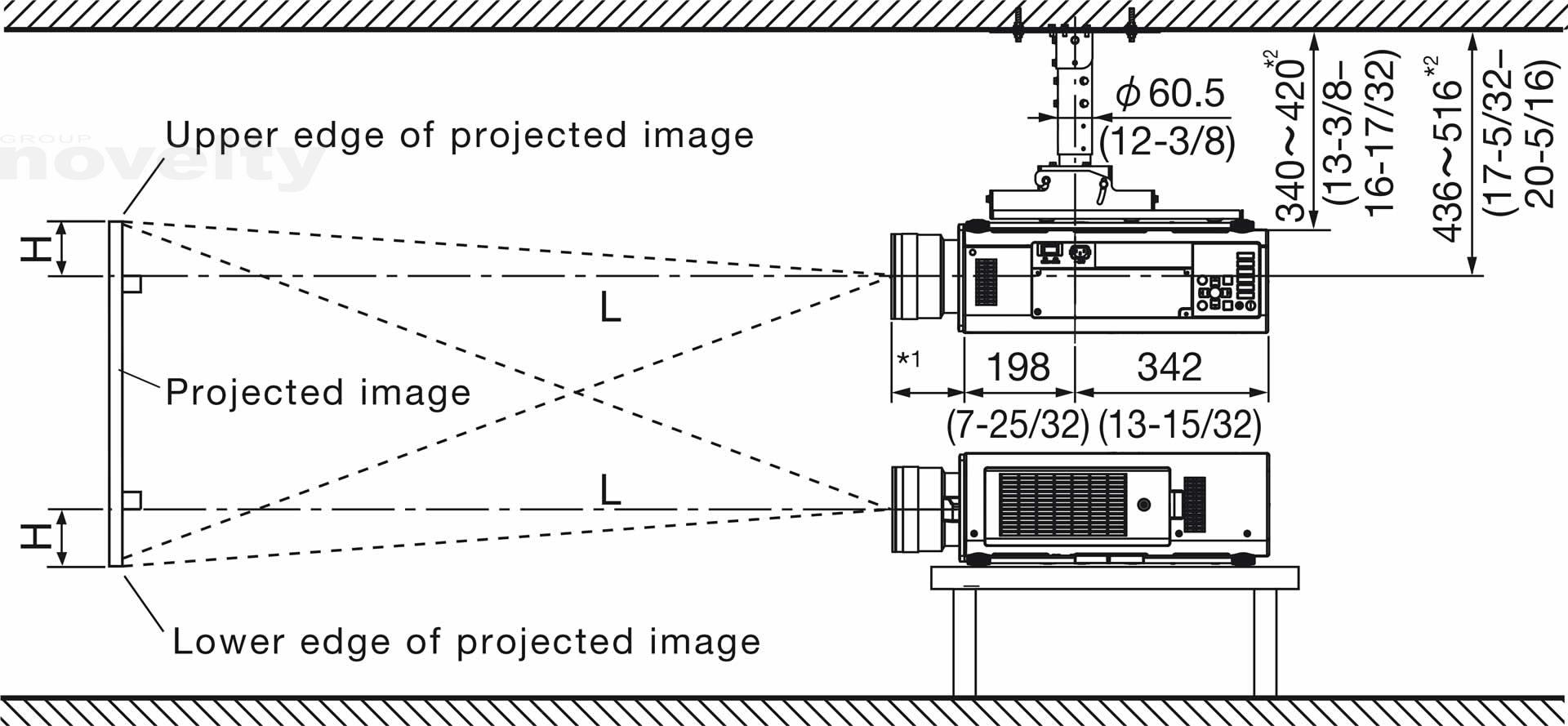 *4: When using only the KEYSTONE correction. When using both the KEYSTONE and ARC corrections of the Geometric Adjustment function: vertical ±5°, horizontal ±5° (vertical ±10° and horizontal ±15° with the ET-D75LE4/D75LE8).