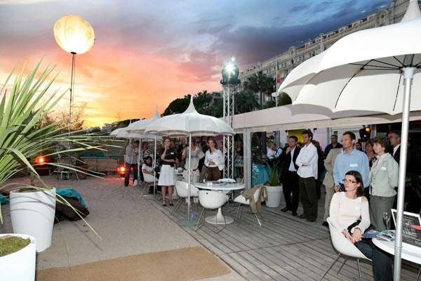 En partenariat avec la destination Cannes – Heaven for events et le magazine L’Evénementiel, Euroson Azur – Groupe Novelty a invité le mercredi 4 juin 2008 plus de 150 personnes (lieux et agences événementiels, clients corporate) sur la plage du 3.14 afin de présenter le nouveau département Vidéo sur la Côte d’Azur.