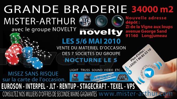 Les marques du Groupe Novelty, à savoir Euroson, JLT Services, Interpel, Rent Up, Stagecraft Company, Texel Systems et VPS, organisent leur 4ème braderie en partenariat avec Mister-Arthur le spécialiste de l'occasion de matériel technique événementiel.