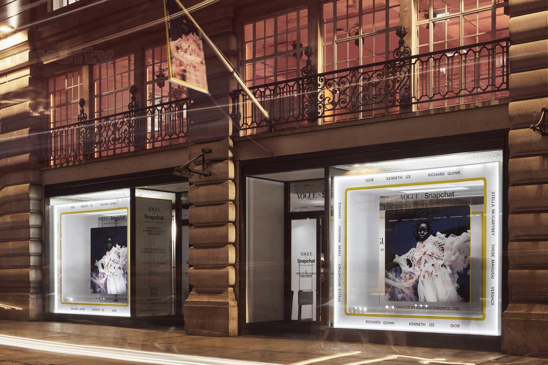 Vogue x Snapchat: Redefining the Body, curated by Edward Enninful OBE, is a groundbreaking collaboration between Vogue and Snap Inc. that illustrates how augmented reality can advance the realm of physical fashion, amplifying and transforming clothing designs through innovative digital experiences, which are available to an inclusive global audience on Snapchat. The exhibition debuted in June 2022 at the Centre d’art La Malmaison in Cannes, and opened for its second iteration in Central London on 18th February 2023, with an exclusive event at London Fashion Week.