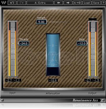 The Renaissance Axx is a compressor ideal for optimizing level and dynamics of any track especially guitars, bass and other instruments. The Renaissance Axx Incorporates a limiter at the output so that you don't create digital clipping. The Renaissance Axx has a fixed ratio curve and automatic release control. Using just 3 simple controls you can get the dynamics and level that you want. The idea behind the control of Renaissance Axx is to have the musician and more hobbyist sound engineer in mind and provide something that fast setting and yet very effective with the sound quality of a true pro audio quality.
