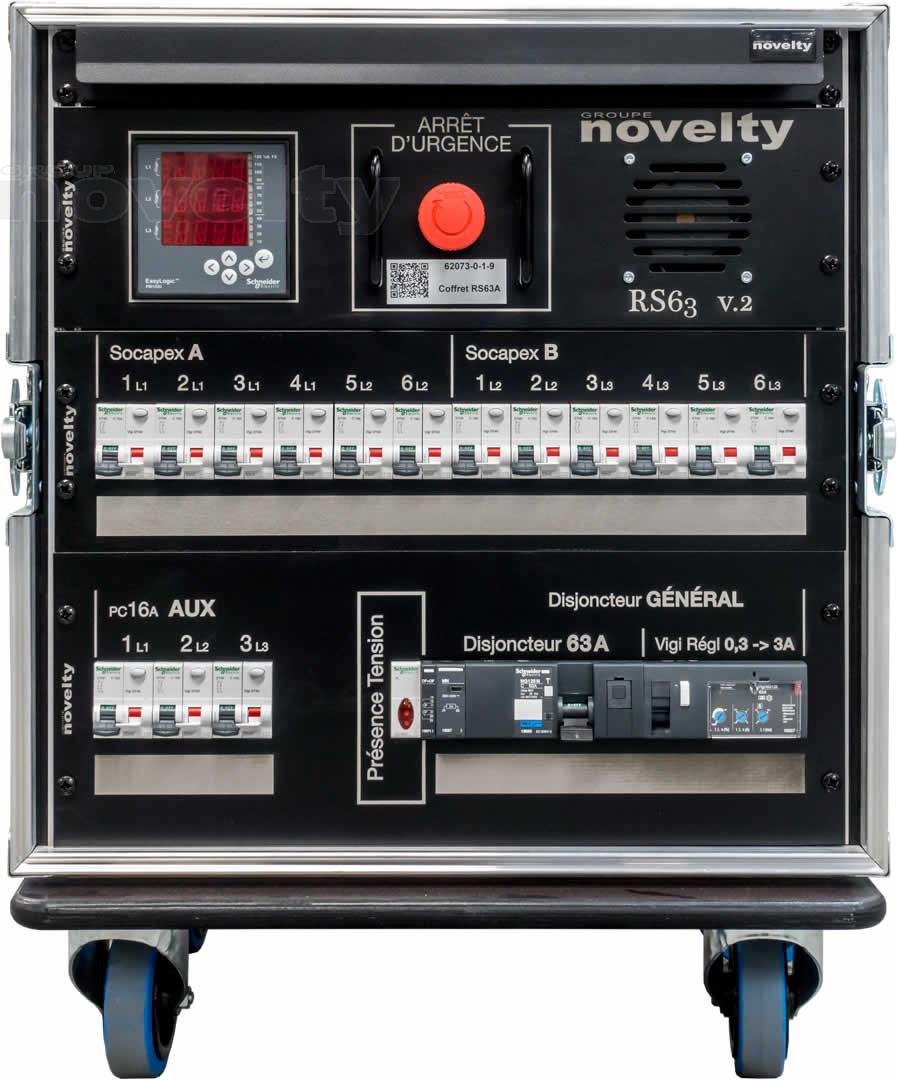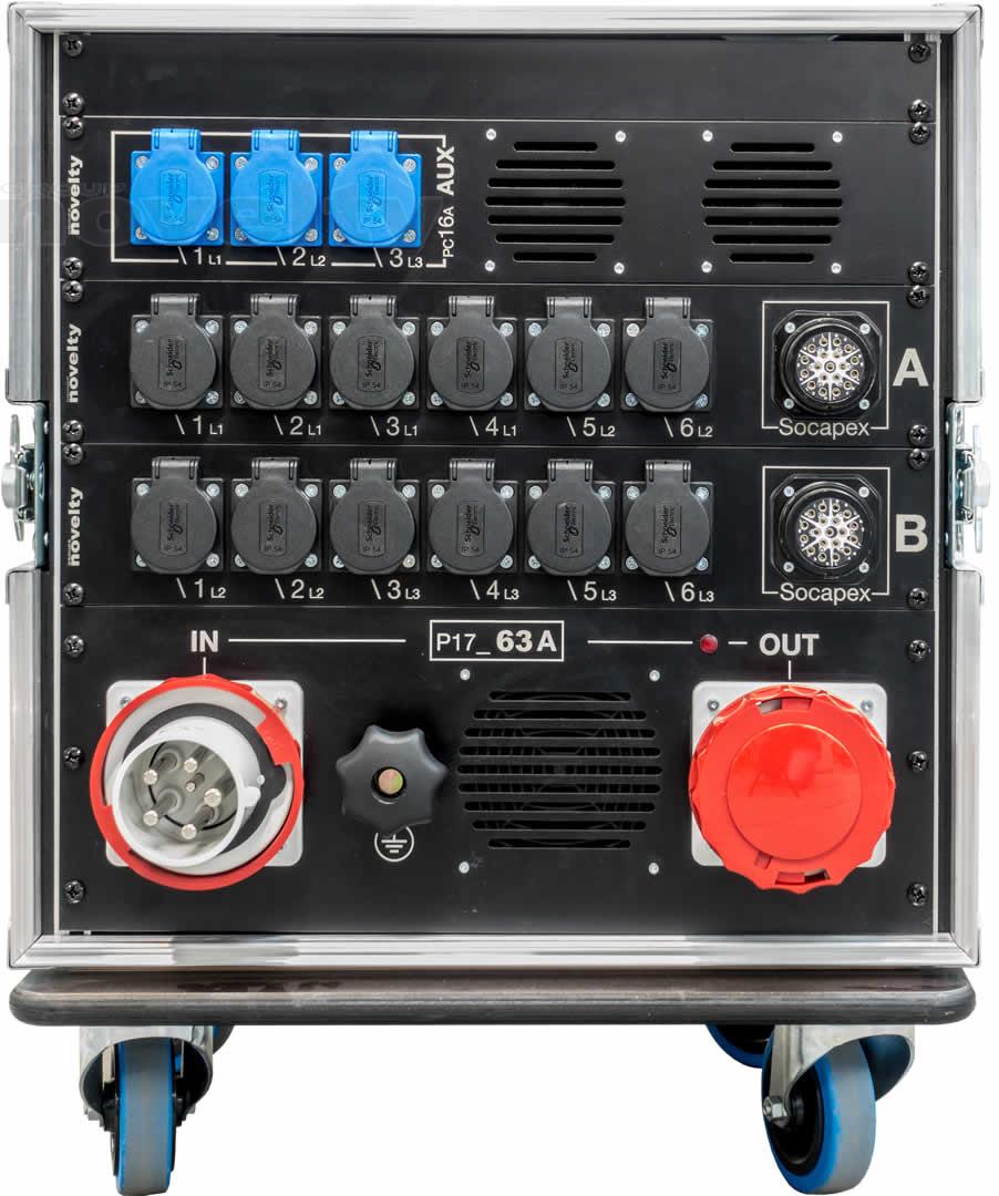 Armoire de distribution IN = P17 63tri / OUT = 12+3 x PC16 + 2 x Soca 419, 30mA, Vigi 0.3-3A, recopie 63A