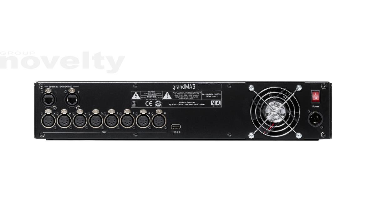 The grandMA3 processing units are designed for rack mounting and all models are only 2RU, allowing for efficient touring solutions. Each model is equipped with 8 DMX outputs for frame-synchronous DMX output throughout the network. Additional frame-synchronous DMX outputs are available with the addition of grandMA3 xPort Nodes.
