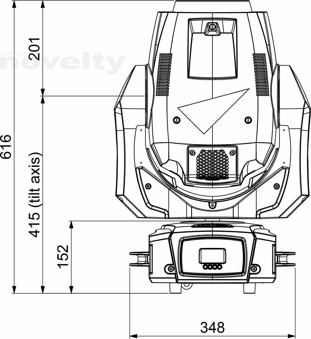 • Two gobo wheels (9 rot. & 16 stat.) with super-crisp projection and high contrast on surfaces and in mid-air