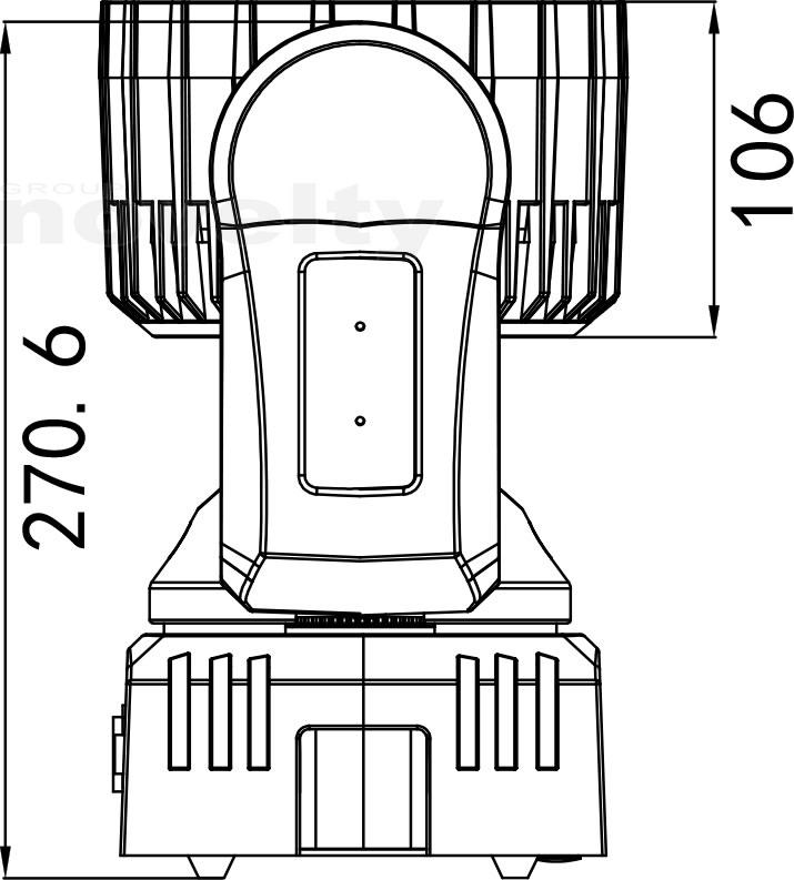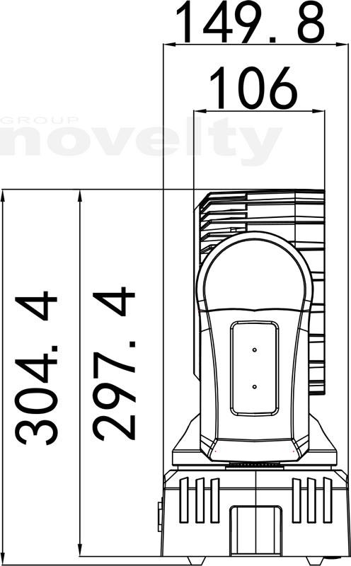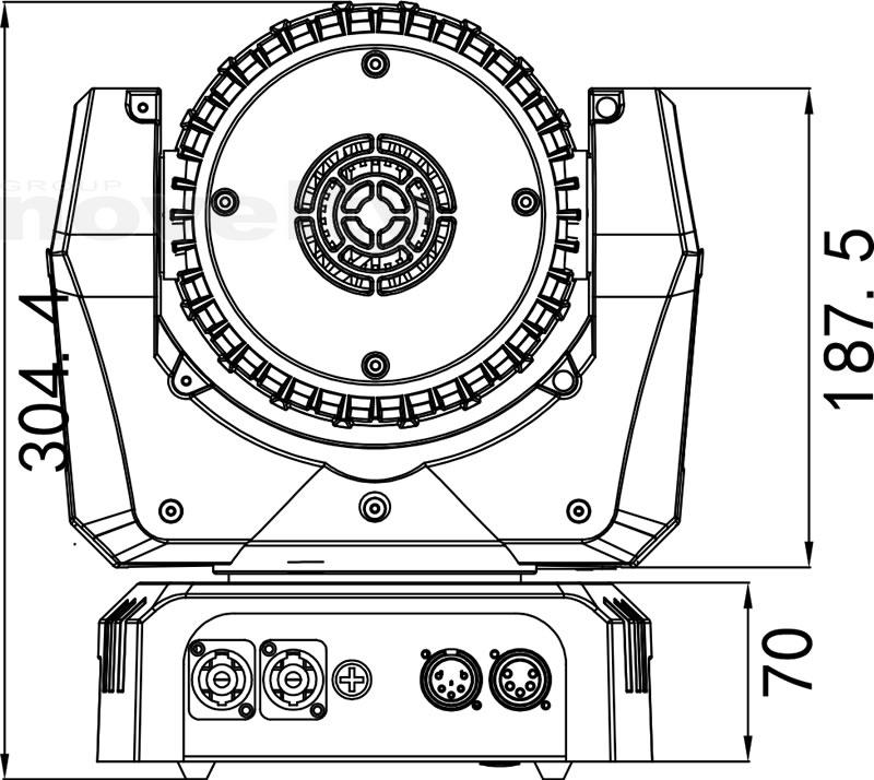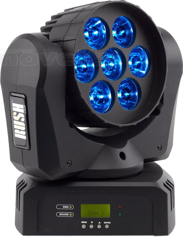 Projecteur lyre asservie type Wash, angle d'ouverture 10 à 60°, 151W, gradateur electronique et stroboscope.