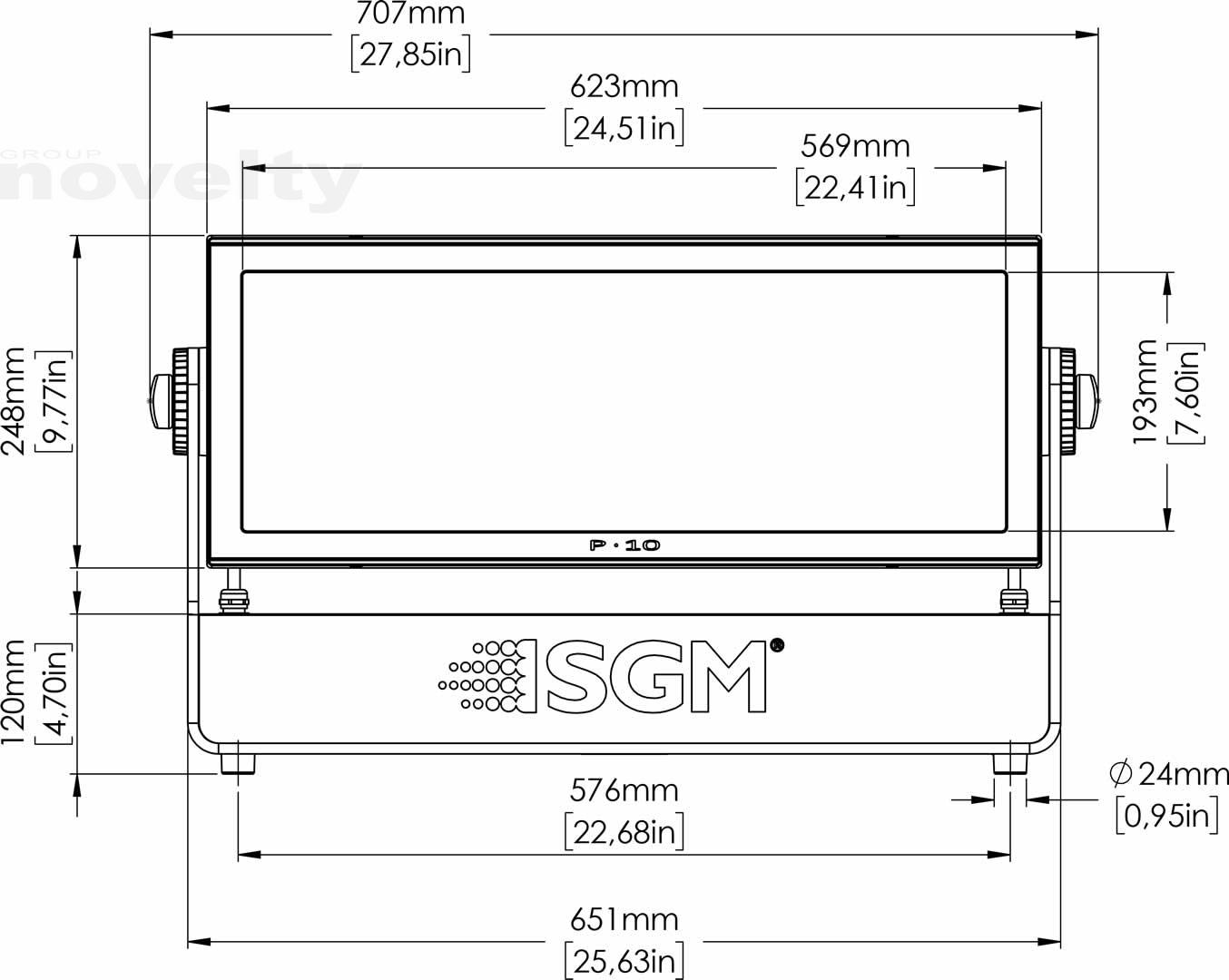 Because of its integrated handle and included omega brackets, the SGM P-10 is easy to transport, to rig, and to focus. The P-10 comes with 3 x 2 ¼ turn locking points to allow the use of one or two clamps, enabling the fixture to be mounted in any position. The built-in safety wire eyelet in the base secures the unit when rigged.