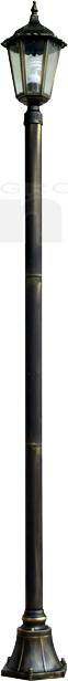 Lampadaire style parisien, 1 tête à 6 faces en verre, corps en fonte d'aluminium, finition metal noir et or, lampe basse consomation E27