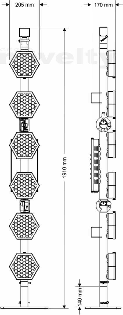 - 6 x 230W halogen bulbs