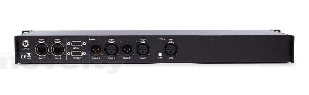 The Green-GO InterfaceX links 2-wire or 4-wire analog intercom systems into the Green-GO digital Ethernet network. This audio in/out interface with contact closures connects to an existing matrix or other analog interfacing products. A 4-wire intercom can be connected to the dual in/out 3-pin XLR ports. This allows two separate audio signals (or a stereo signal) to be injected into the Green-GO network and transmitted to any other location on the same Ethernet network. Next to the 4-wire connections, there is a separate 3-pin XLR port dedicated to connecting a basic analog 2-wire intercom (partyline system). All of the ports can be configured individually through the setup menu of the Green-GO InterfaceX. There are also two GPIO connectors provided on the back of the device.