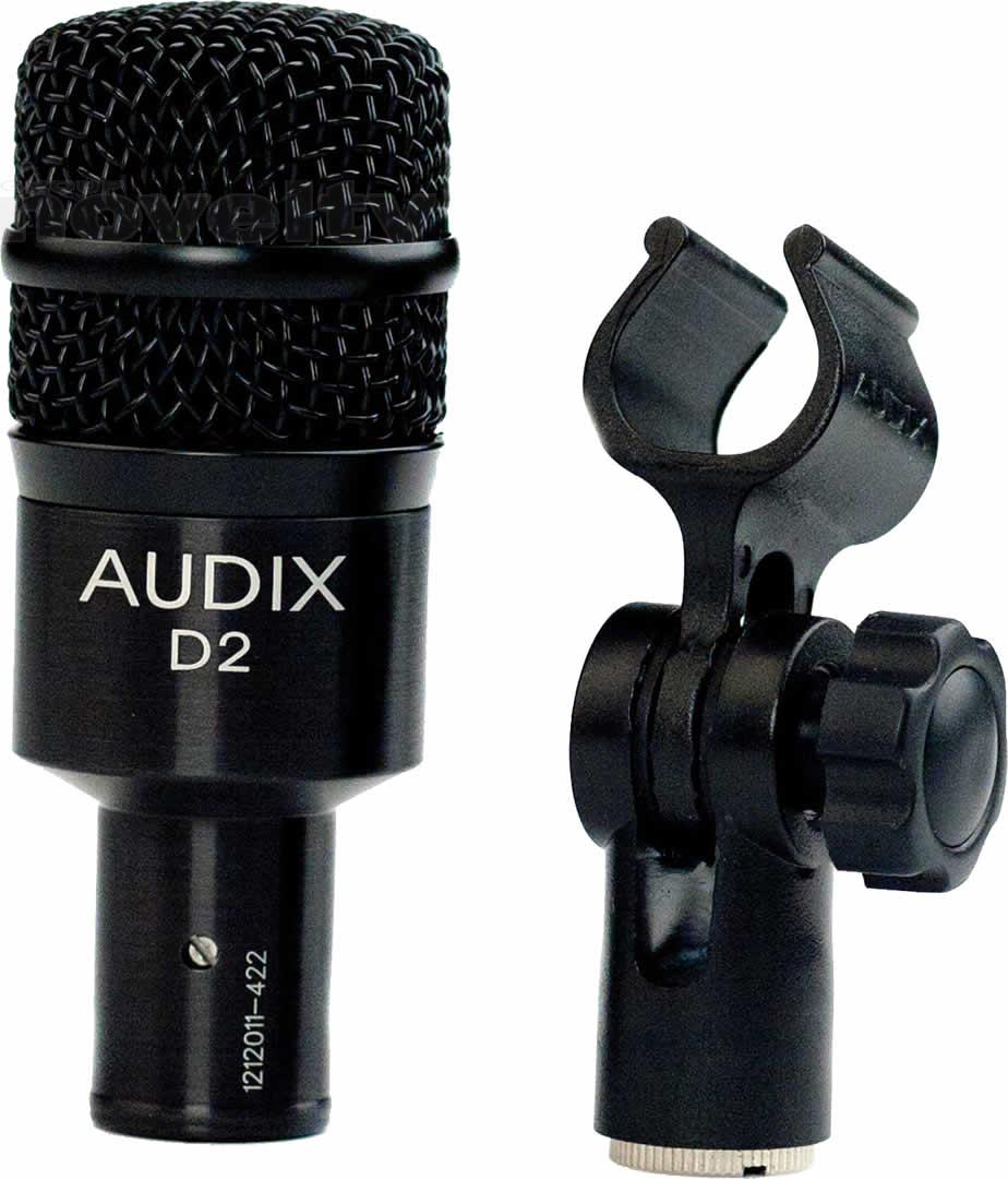 The D2 is a compact dynamic instrument microphone. Part of Audix’ D-series, it has a scooped-mids EQ curve, with a larger low-frequency boost than the D4.