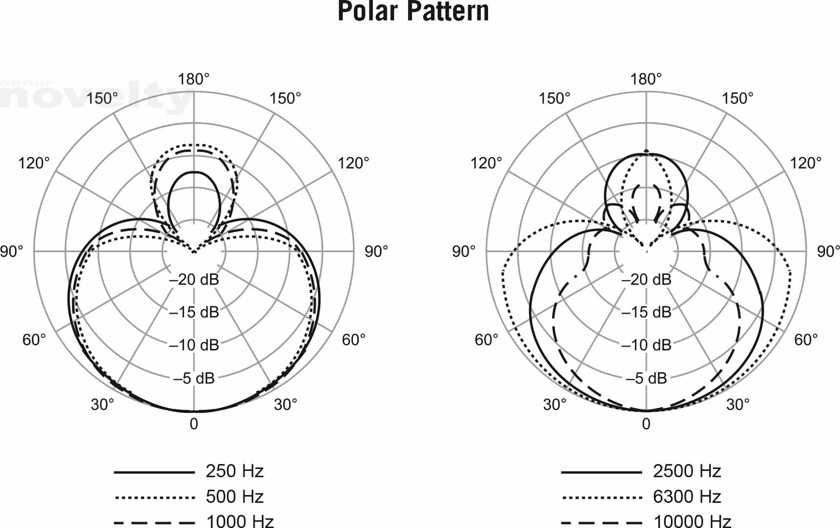 - Polar Pattern : Supercardioid, rotationally symmetrical about microphone axis, uniform with frequency