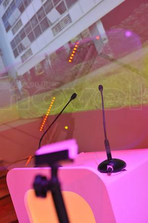 Set de 2 x microphones statiques "col de cygne" pour pupitre, livrés avec embases
