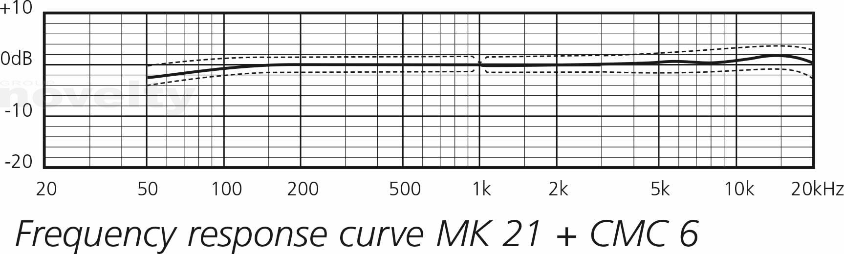 The MK 21’s orientation is less critical than with a cardioid, since direct sound arriving on axis and reverberant or other sounds off axis are both reproduced accurately. This lack of coloration in the off-axis pickup produces a “warm” and natural sonic impression.