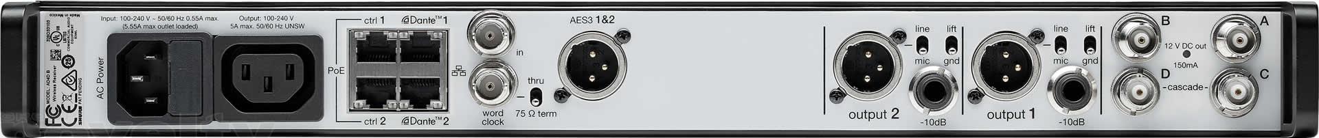 - Front panel headphone jack enables Dante™ Cue and Dante™ Browse monitoring
