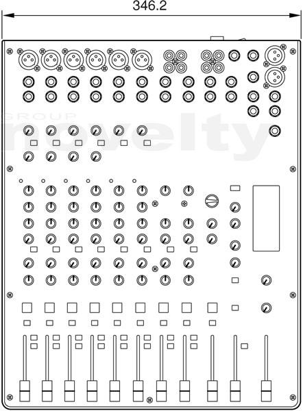 - High-quality NeutrikTM balanced XLR connectors on mono microphone/line channels and XLR-equipped stereo channels.