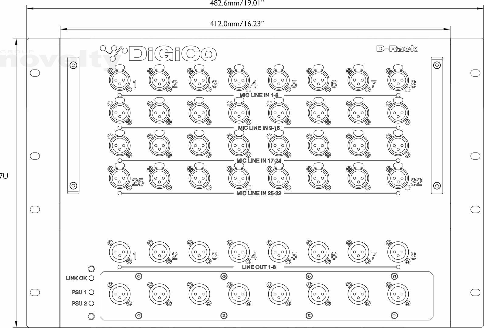 - Local I/O 8 x Mic/Line I/O, 8 x AES/EBU I/O (Mono)