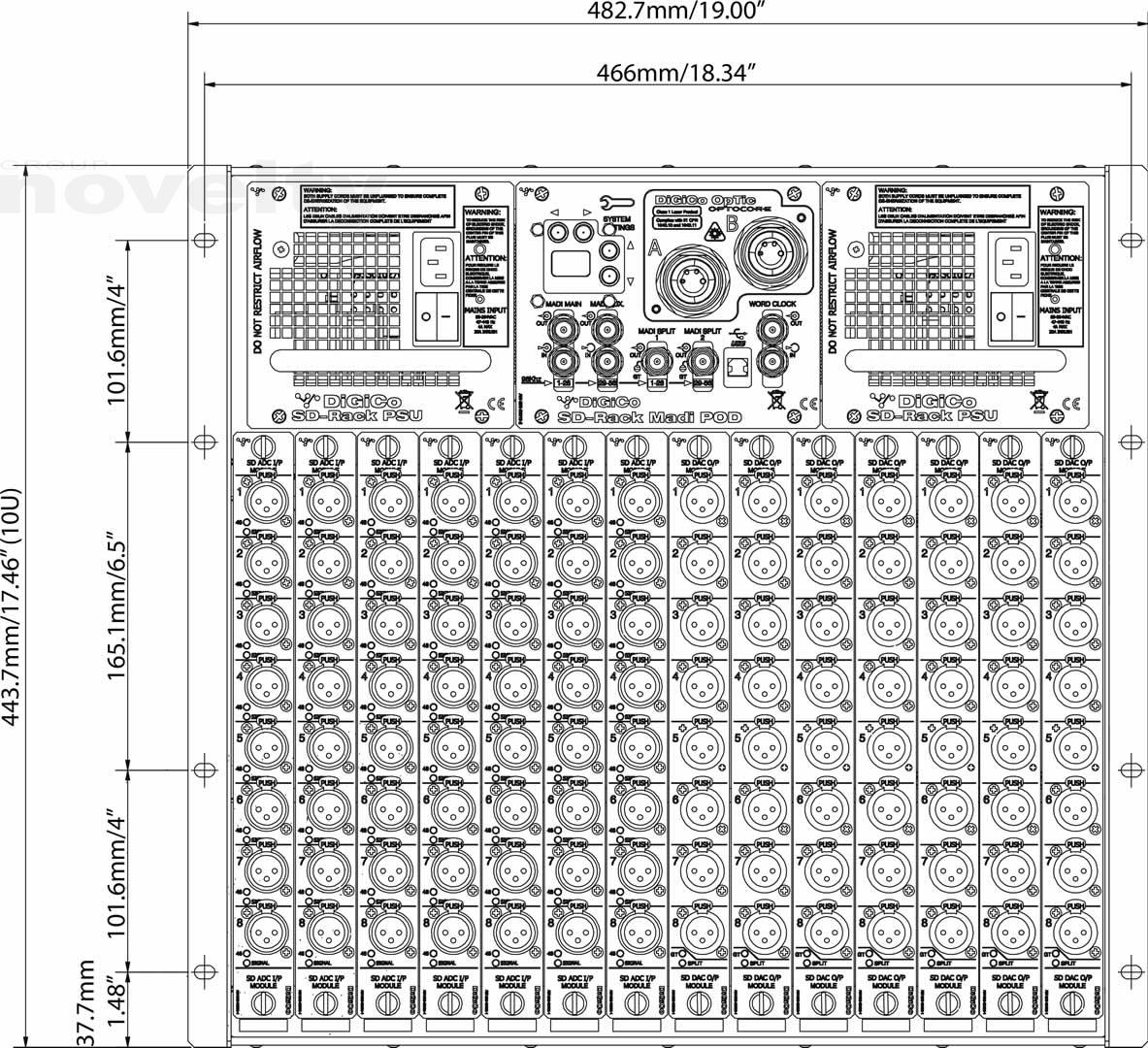 The SD Ten also works seamlessly with the DiGiCo SD-Rack, which delivers up to 192kHz high resolution analogue conversion. This opens the door to a wealth of interfacing options and provides the user with even further flexibility: when fitted with the optional Optocore interface, up to 14 SD-Racks and five redundant engined consoles can connect to one optical loop, which means a massive 1152 I/O connections are achievable (56 inputs and 56 outputs per SD-Rack).