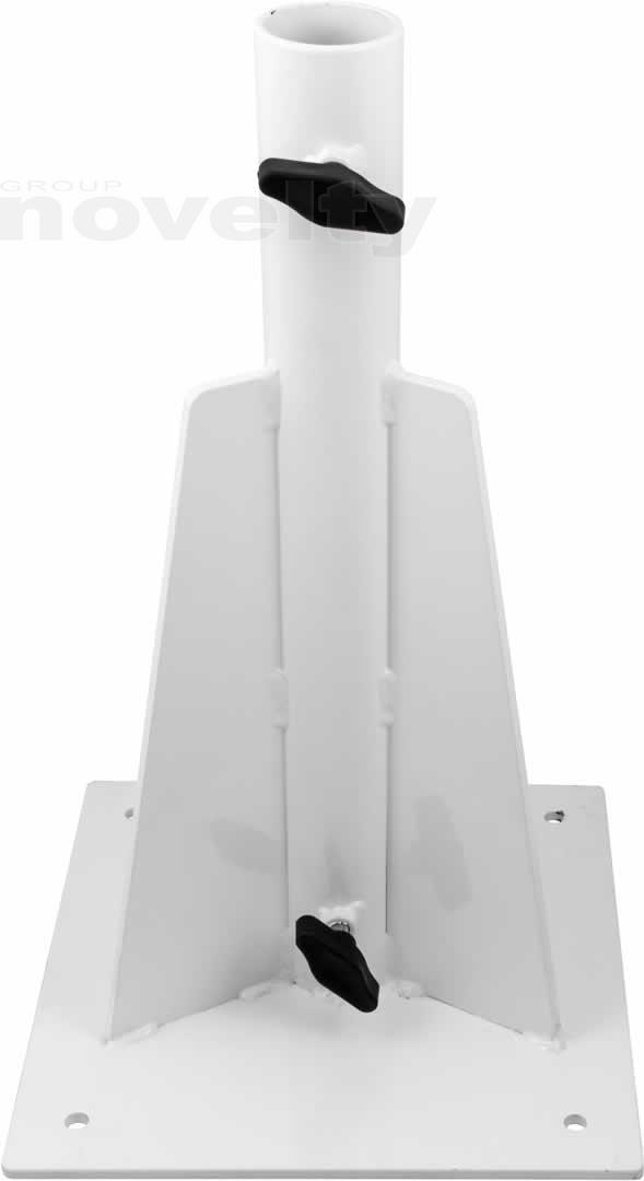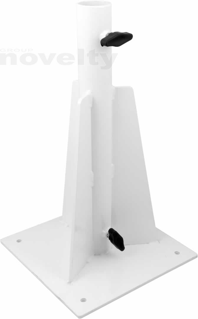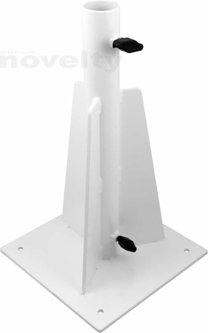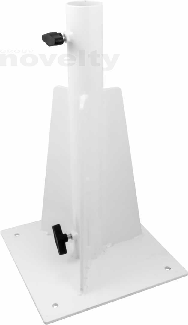 Embase "chandelle" pour tube Ø50mm, 4 trous entre-axe structure série 300 carré pour assemblage sur embase lourde, couleur blanche