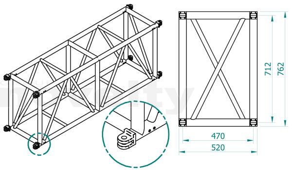 Rectangular section High Load aluminium truss with 76x52 cm, lenght 50cm
