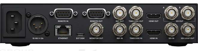 - Contrôle externe : Contrôle RS-422, démarrage et arrêt de l'enregistrement via SDI et timecode. Inclut le Blackmagic HyperDeck Ethernet Protocol. Prise en charge du chargement des fichiers FTP à distance.
