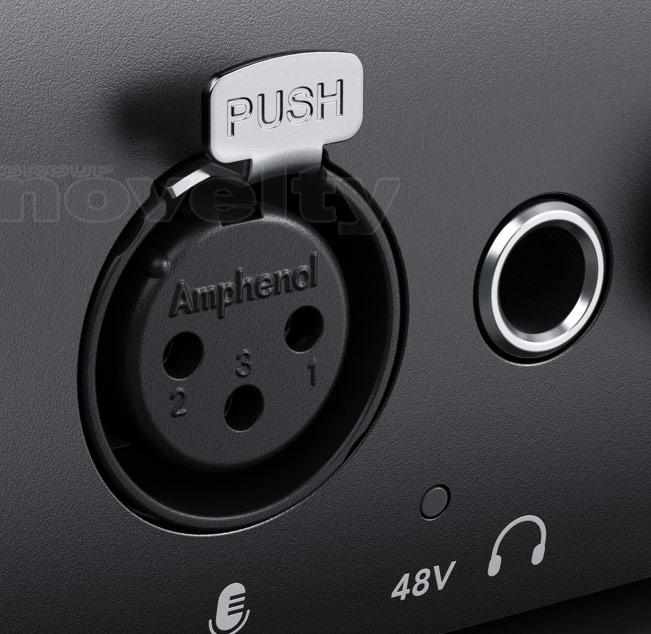 - Entrée micro : 1 x entrée XLR pour microphone Alimentation fantôme 48V commutable via logiciel.