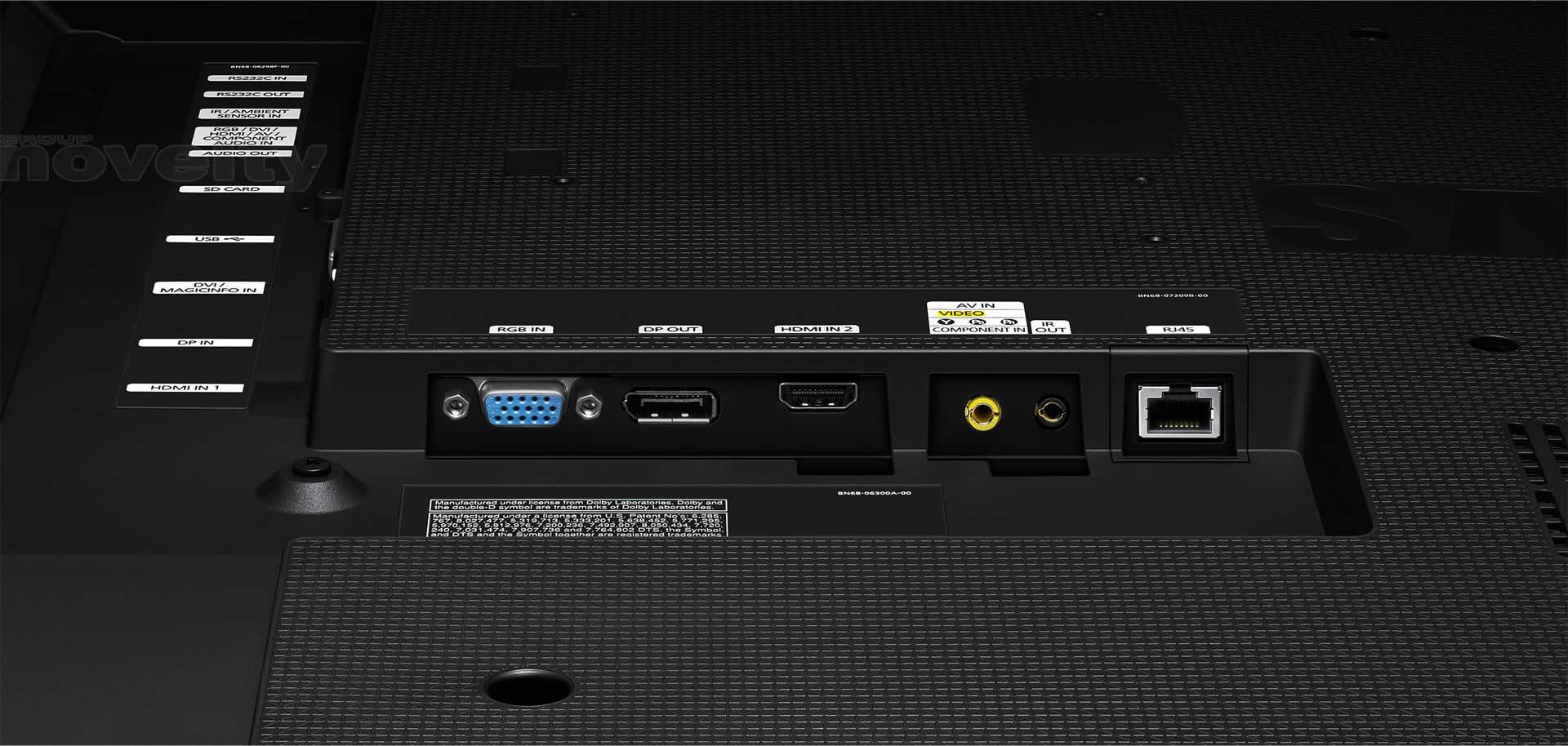 - Special : Magic Clone (to USB), Auto Source Switching & Recovery, RS232C / RJ45 MDC, Plug and Play, PIP / PBP, Image Rotation, Button Lock, Built In MagicInfo Player S3, Firmware Update by Network, LFD New Home Screen, Predefined Template for Vertical Usage, Multi Channel, Mobile Control, Event Schedule, Backup Player, PC-less Touch, MagicPresenter