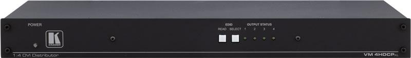 The VM-4HDCPxl is a high-performance distribution amplifier for DVI signals. The unit reclocks and equalizes one input signal and distributes it to four identical outputs.